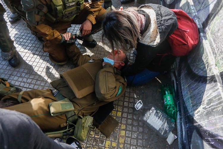 Dos carabineros son atacados por turba durante protesta en Santiago
