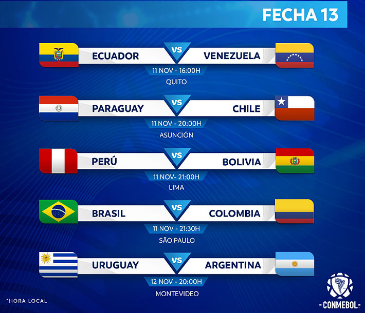 Actualmente el equipo que dirige Martin Lasarte marcha sexto con 13 puntos y está a 3 unidades del repechaje y del cuarto lugar, que ocupan Uruguay y Colombia respectivamente.