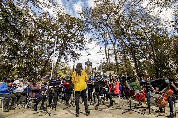 Sobre el trabajo educativo de esta agrupación, conformada por 15 músicos y músicas regionales, la directora asistente y violinista, Geraldine Turres, expresó que “gracias al apoyo del Fondo de la Música para Orquestas Populares que nos adjudicamos este año, hemos querido incorporar una nueva modalidad de trabajo educativo en conjunto con orquestas infantiles y juveniles de la región, con ellas nos involucramos por un tiempo prologado para trabajar en pos de un resultado musical que es presentado en conjunto”.