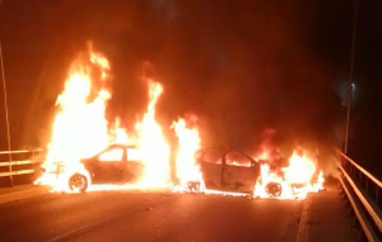 Los sitios escogidos para la quema de los automóviles fueron, 2 en el sector del puente Limache, 1 en el puente Los Chaparros y otro en el paso de calle Colón.