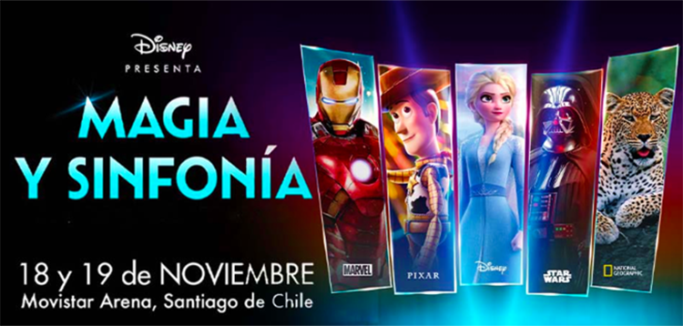 Disney presentará Magia y Sinfonía, un espectáculo visual y musical para toda la familia que, por primera vez, reunirá en un mismo escenario momentos y canciones memorables de Disney, Pixar, Star Wars, Marvel y National Geographic. Con música en vivo interpretada por la Filarmónica de Chile y bajo la dirección artística y musical del maestro Thiago Tiberio, los conciertos sinfónicos tendrán lugar el 18 y 19 de noviembre en el Movistar Arena de Santiago de Chile. Las entradas están disponibles a través de www.puntoticket.com.