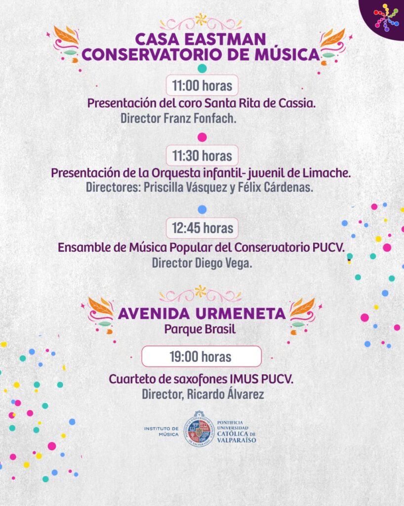 Según se informó, en la oportunidad habrá música, teatro, danza y presentaciones del Instituto de Música de la PUCV; todo con entrada totalmente liberada y abierto a todo público.