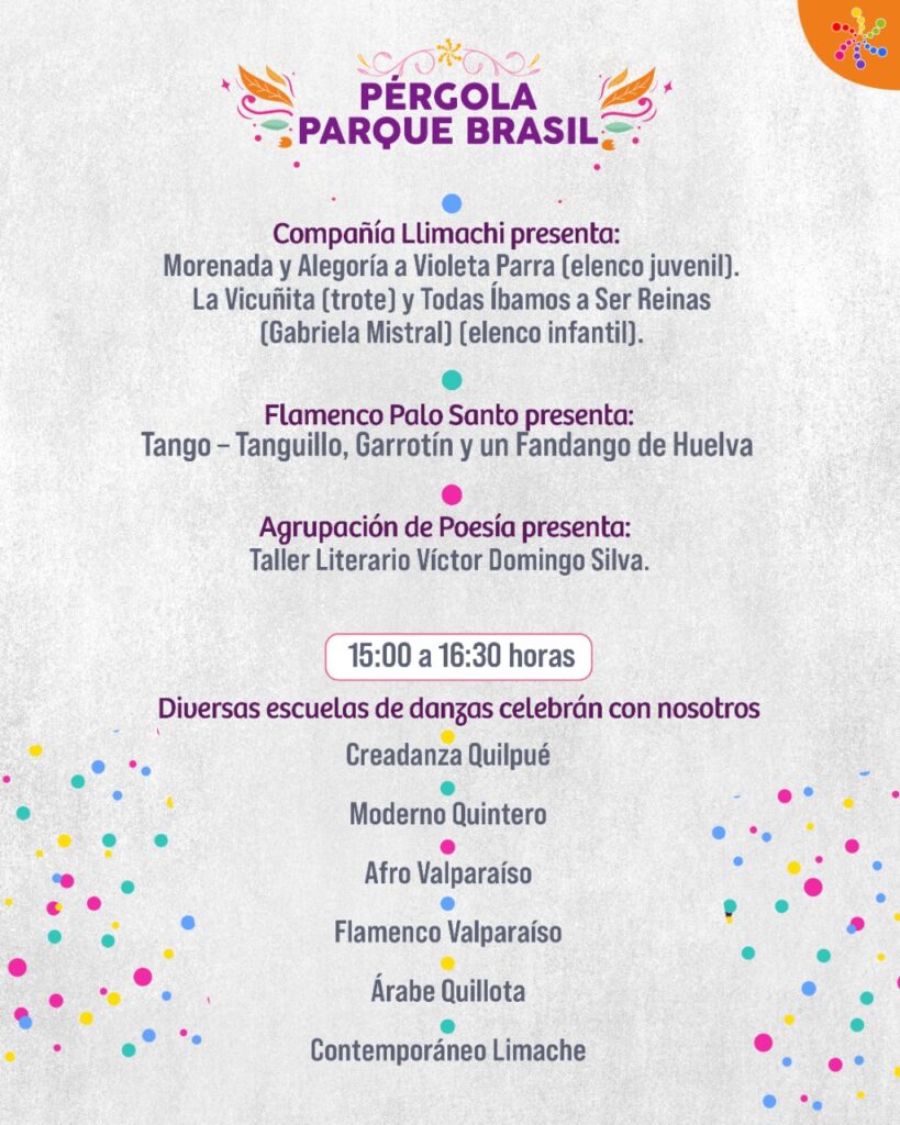 El programa artistico se iniciará a contar de las 11:00 y se extenderá hasta las 21:30 en el Parque Brasil.