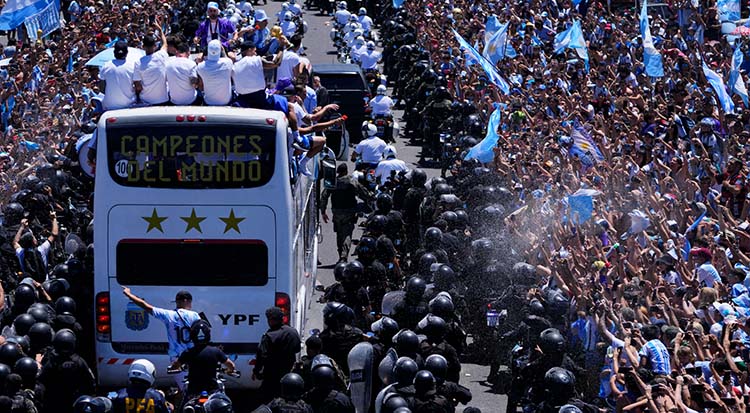 Caótico se tornó en momentos el trayecto que realizó la selección argentina por Buenos Aires, celebrando haber ganado la Copa del Mundo de Qatar 2022.