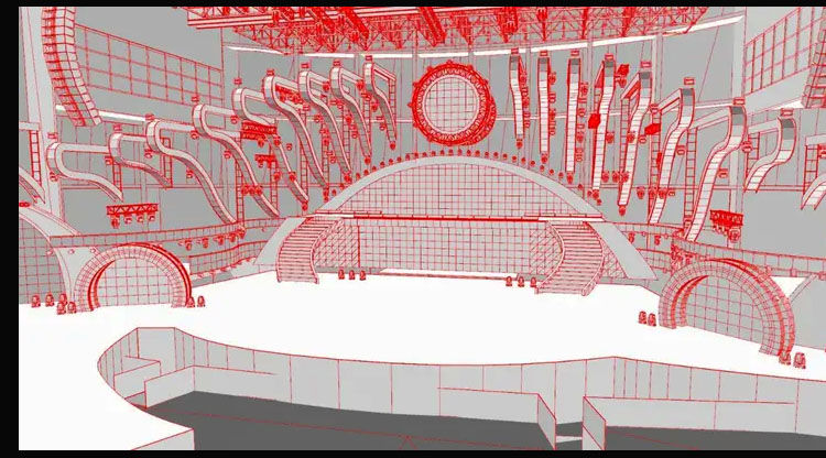 “Lo único que se va a mantener de la escenografía original son las costillas, como le llamamos nosotros, que son estas verticales aéreas que están colgando en la Quinta Vergara, son cerca de 38 a 40. Pero toda la parte central este año se va a cambiar, se va a remodelar y se van a incluir elementos nuevos como escaleras y pantalla central con doble nivel”, agrega Merino.