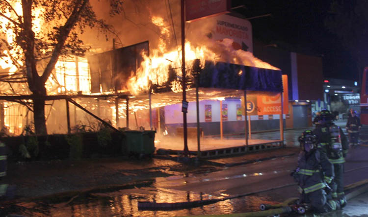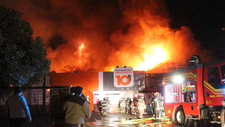 Los restaurantes Donde El Guatón y La Terraza de Margarita, además del Supermercado Mayorista 10, ubicados en avenida Santa Teresa entre calles Manuel Rodríguez y Esmeralda, en Los Andes, resultaron completamente destruidos por el dantesco incendio que se registró la noche del miércoles y que movilizó a 180 bomberos.