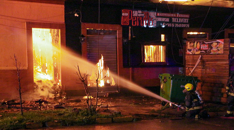 En cosa de minutos el fuego destruyó las instalaciones del local de comidas “PerúPe” para luego avanzar hasta la tienda “El Ferrocarril” que fue consumida íntegramente por el fuego.